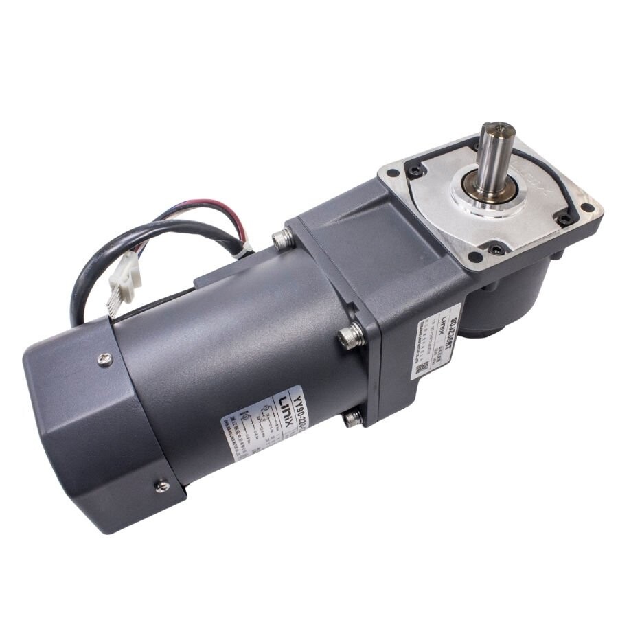 A 220V AC motor with 120W power and 37.5 RPM output speed, featuring an L-type geared structure. Its compact 90C design provides space-saving installation and controlled rotation for industrial machinery and automation systems.